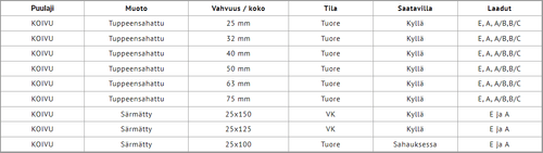 Koivusahatavara suoraan omalta sahaltamme